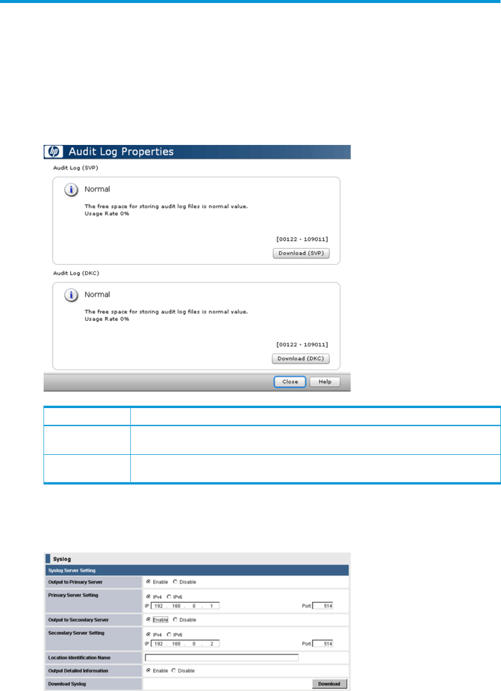 This topic describes the audit log screens in the Remote Web Console GUI. The GUI illustrations