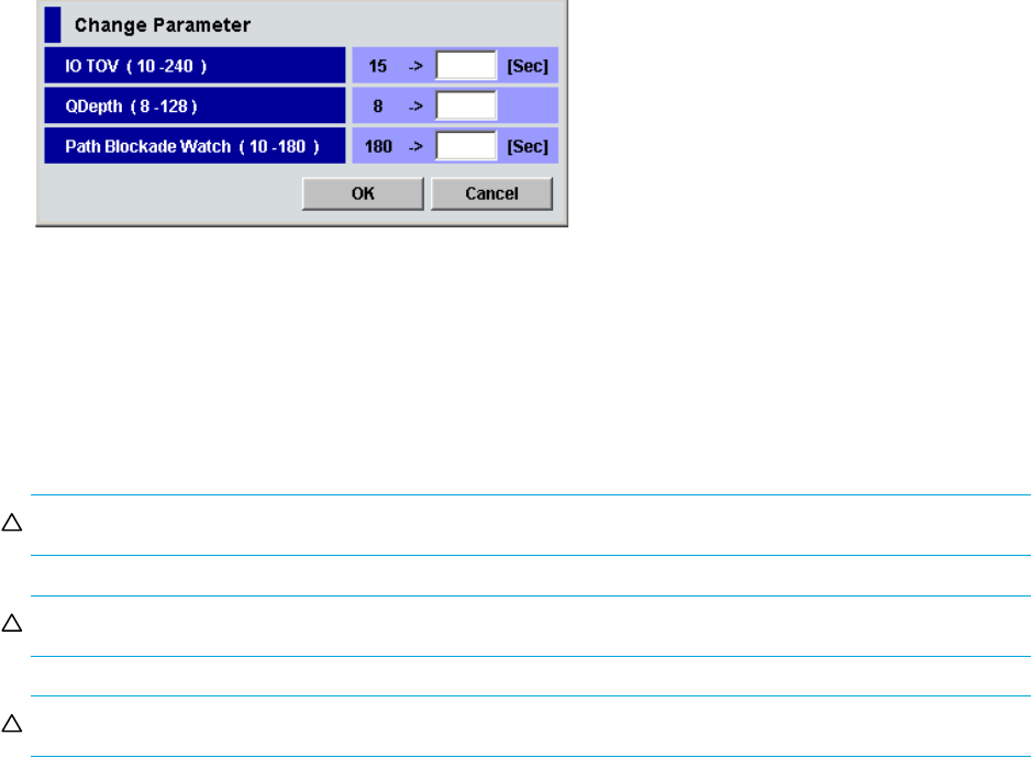 array’s port in the WWN list. Use the Change Parameter pane (Figure 59) to change the port setting.