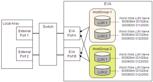 - D Using an XP12000/XP10000/SVS200 with an EVA3000/5000 external storage