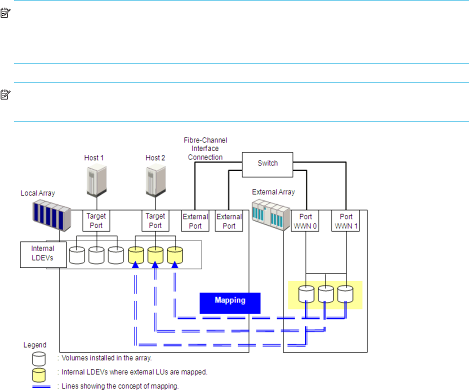 external array volume using the external array’s functions (for example, local replication). After mapping