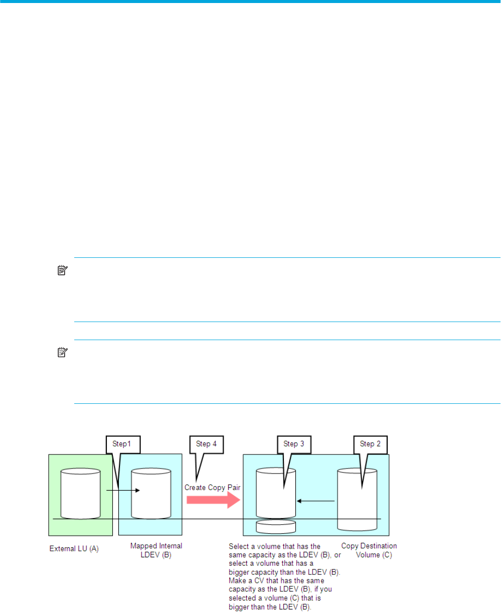 Figure 71 Copying data from external arrays (using external LUs as P-VOLs)