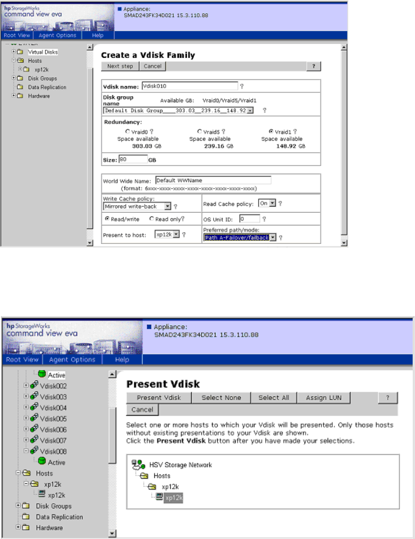 After EVA Vdisks are created, they can be assigned to the previously defined