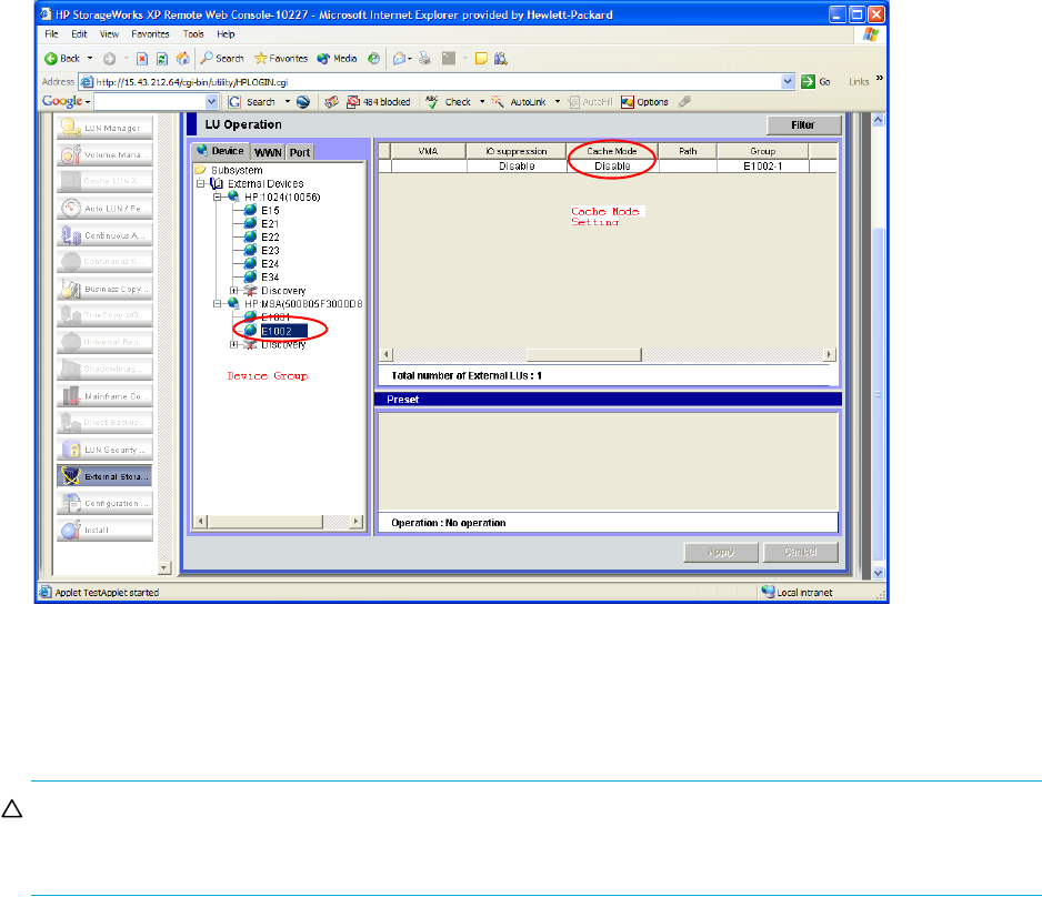 1. In the XP Remote Web Console main pane, click the External Storage button in the left pane. The LU