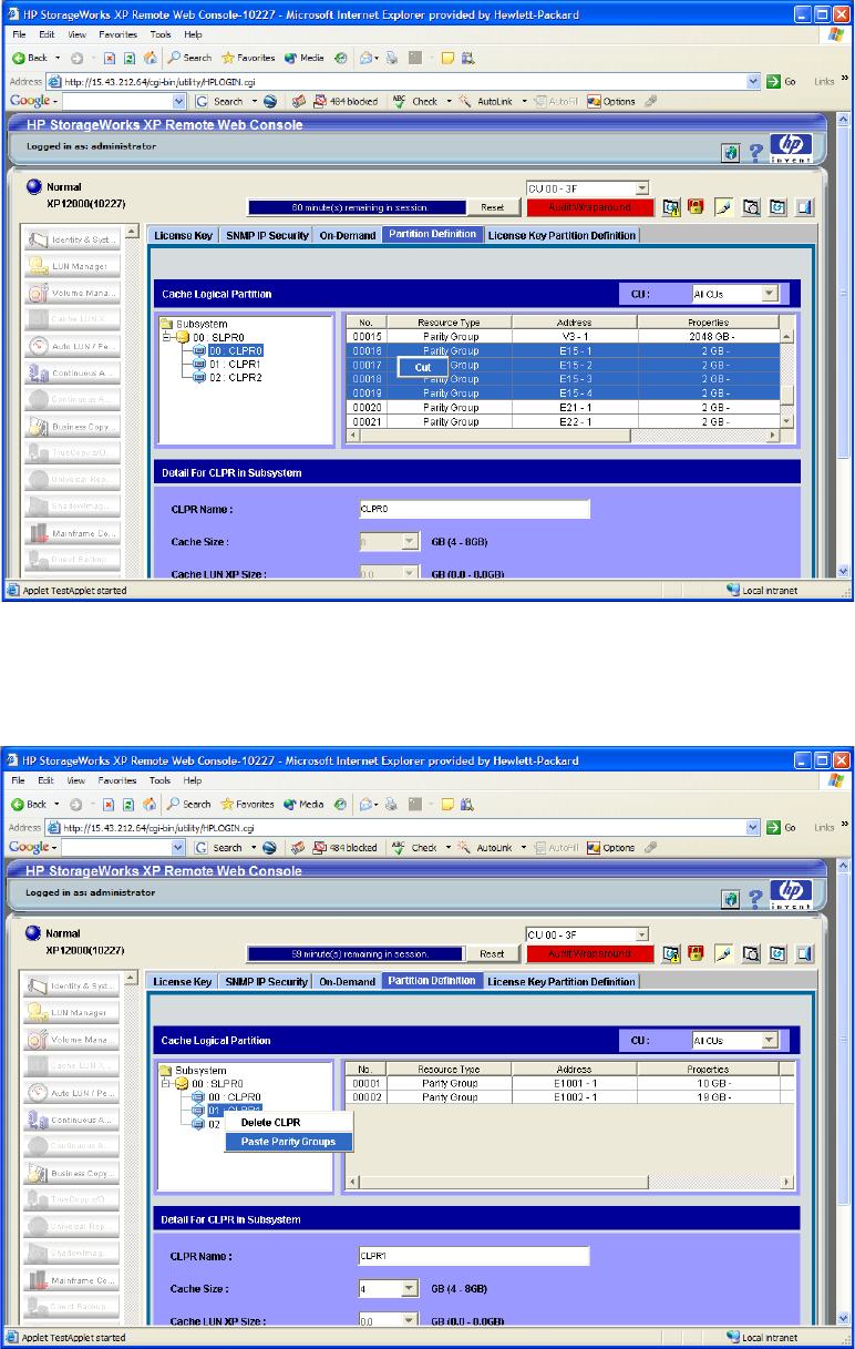 Paste Parity Group (Figure 26). The selected external storage groups are added to the CLPR