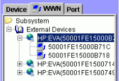 When selected, displays WWNs identifying ports on the connected external array in the tree under