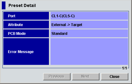 Displays the Preset Detail window with detailed information about actions selected in the Preset list.