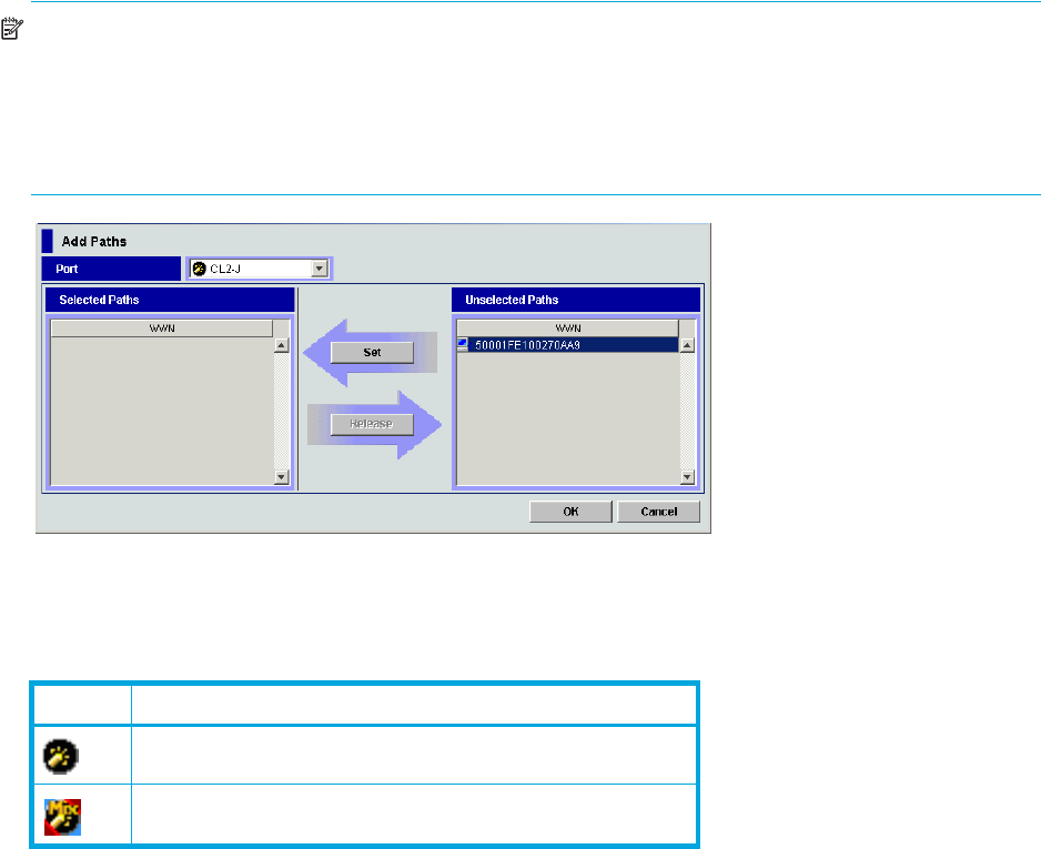 Moves WWNs selected in Unselected Paths to Selected Paths.