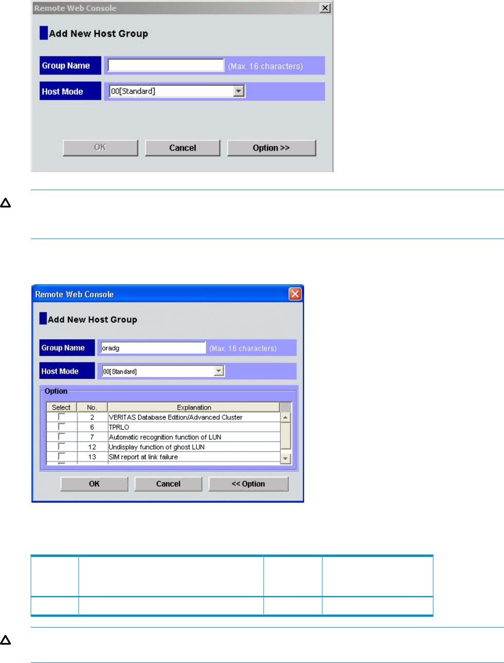 CAUTION: Changing host group modes for ports where servers are already installed and
