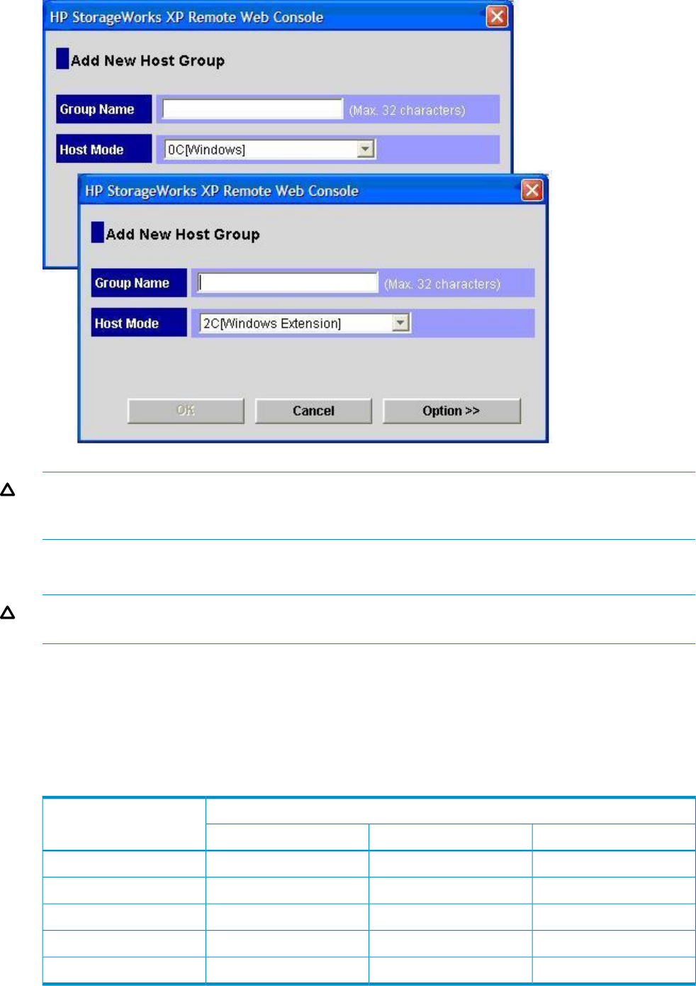 CAUTION: Changing host group modes for ports where servers are already installed and