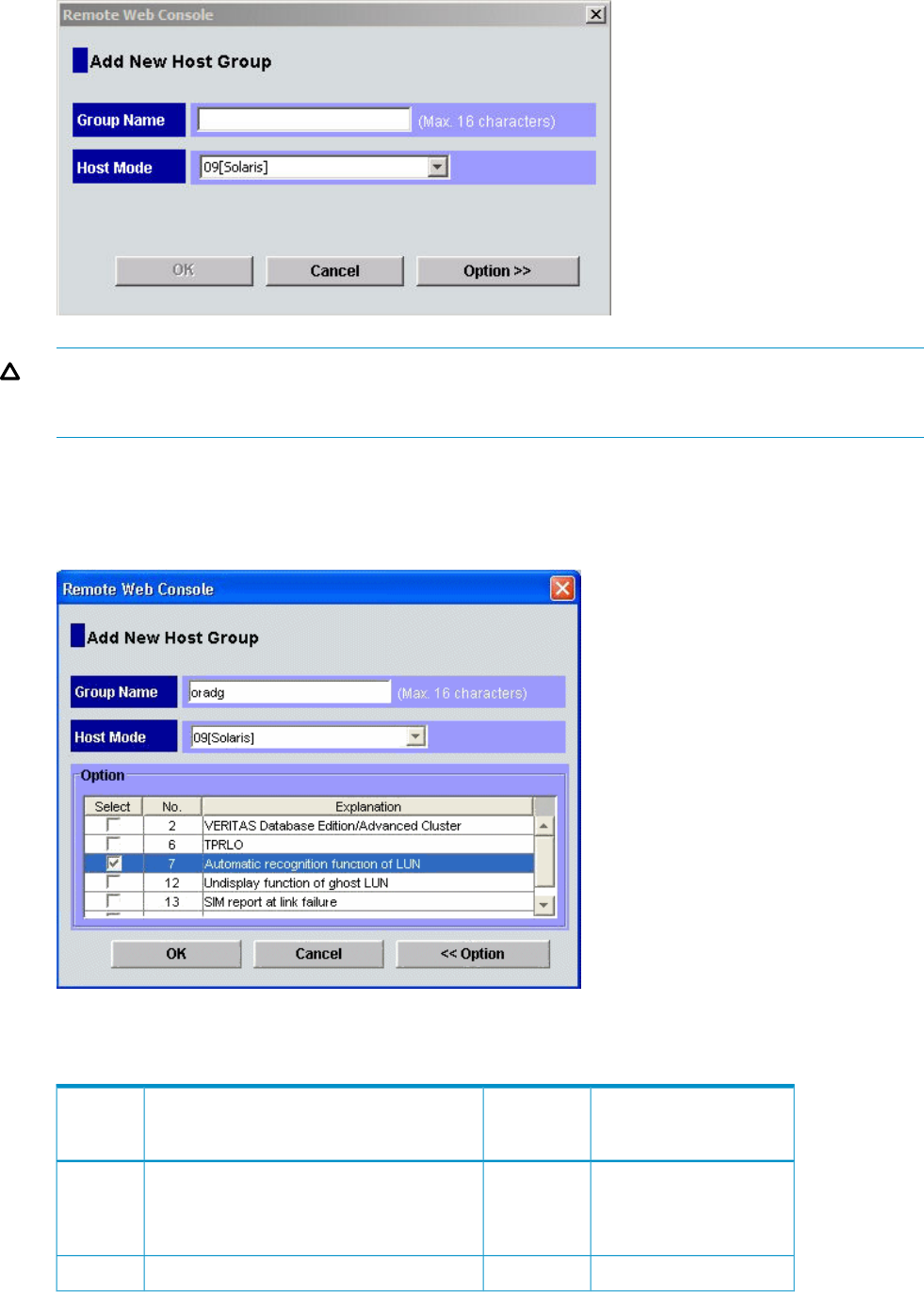 to Solaris hosts. Do not select a mode other than 09 for Solaris. Changing a host mode after the