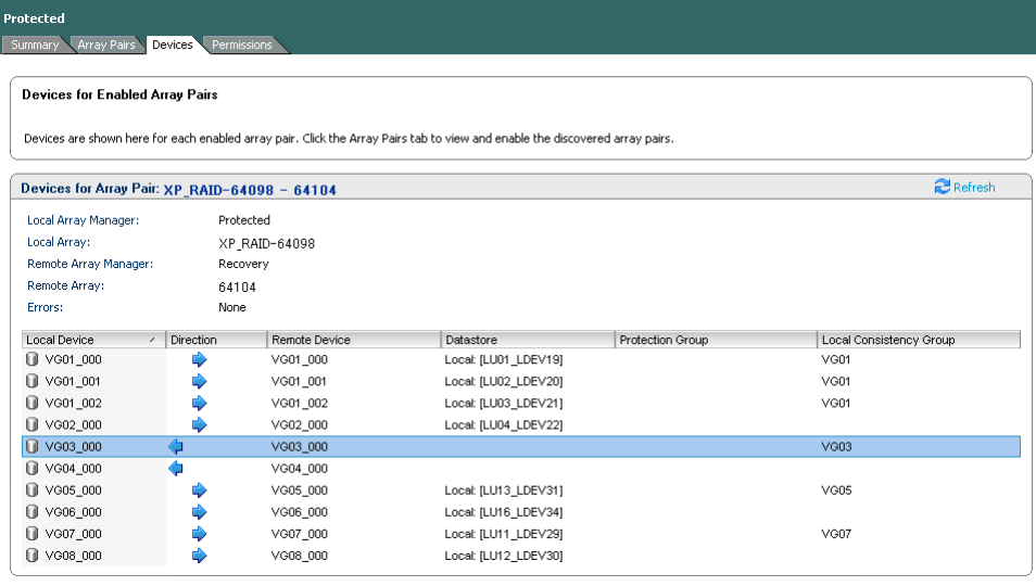 SRM (AM) shows the relation between the Device_Name of the horcm.conf and the datastore