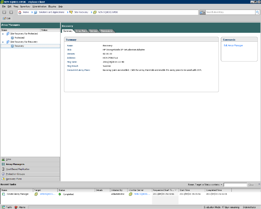 Verify that the Local Array ID and Remote Array ID are discovered by the protection array manager
