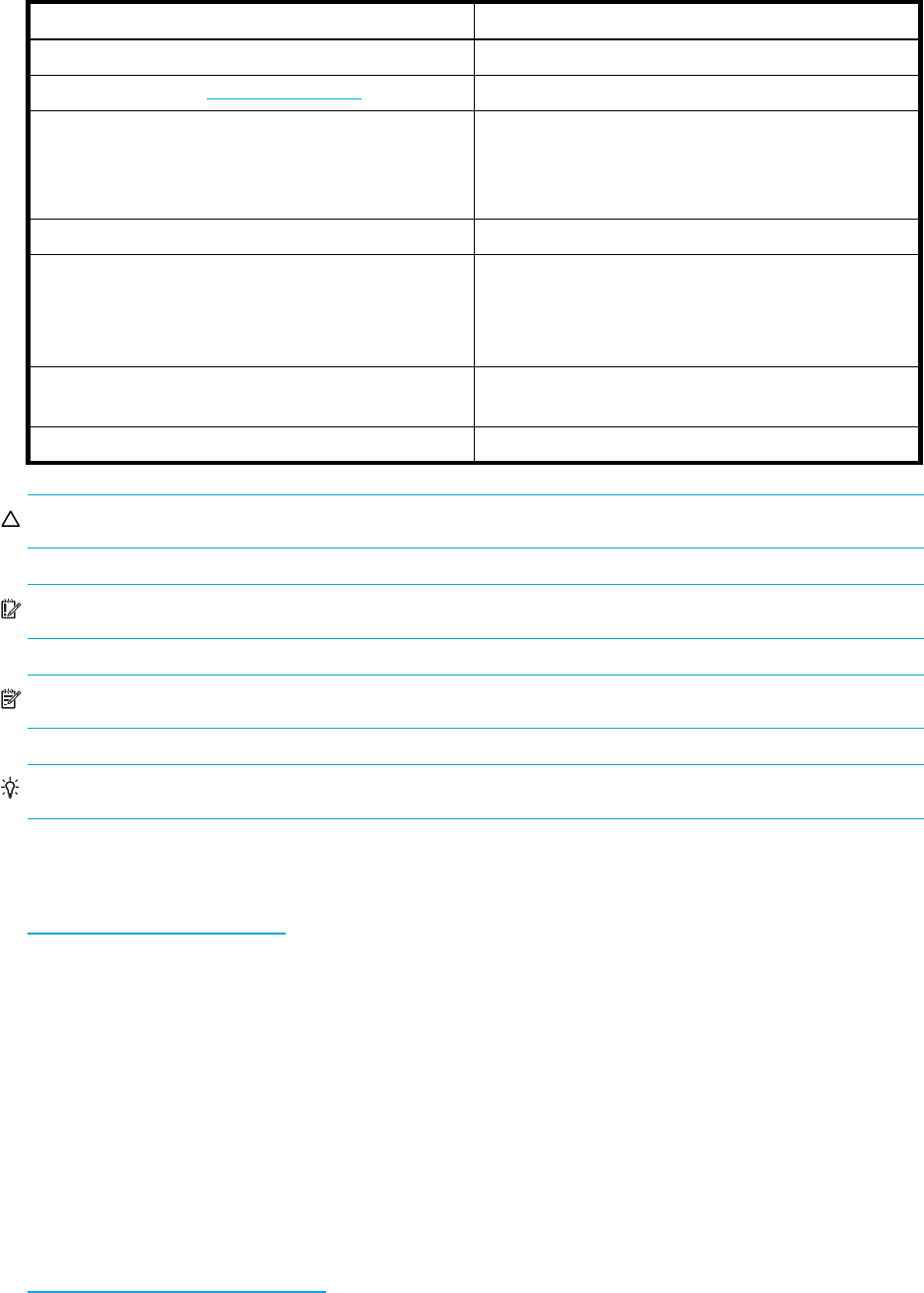 Blue, underlined text: (http://www.hp.com) Web site addresses