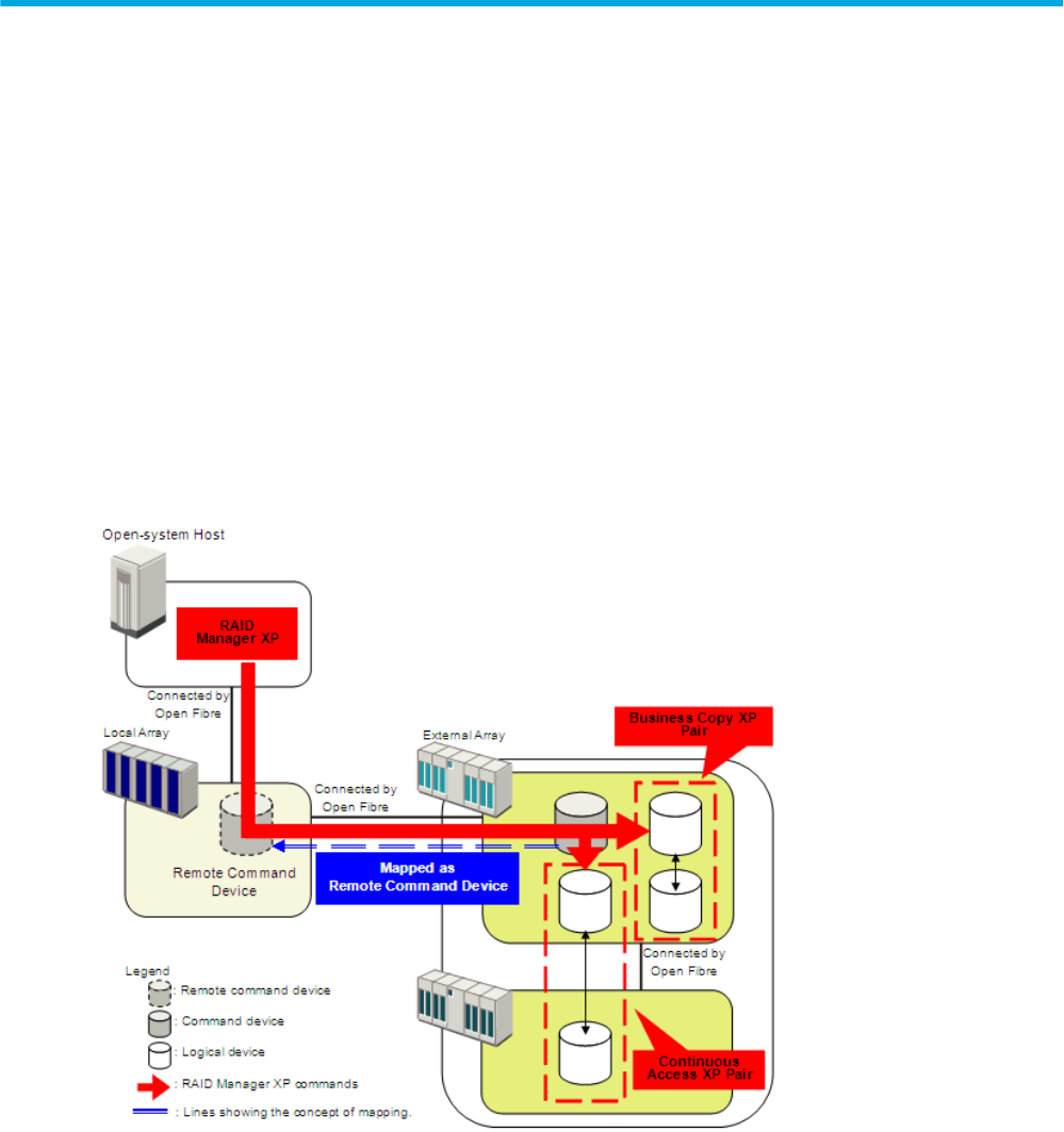 commands for Business Copy XP or Continuous Access XP to the remote command device. This means