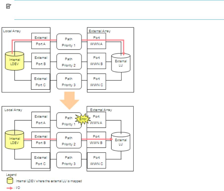 When an error occurs in the path used for I/Os, the I/O execution path switches to the path with the