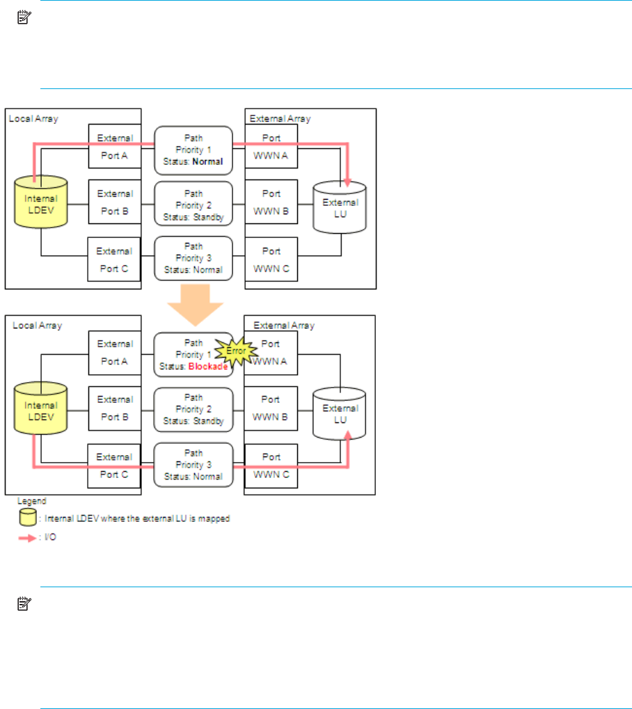 NOTE: When the external array is an EVA array, as you restore the path with the highest priority,