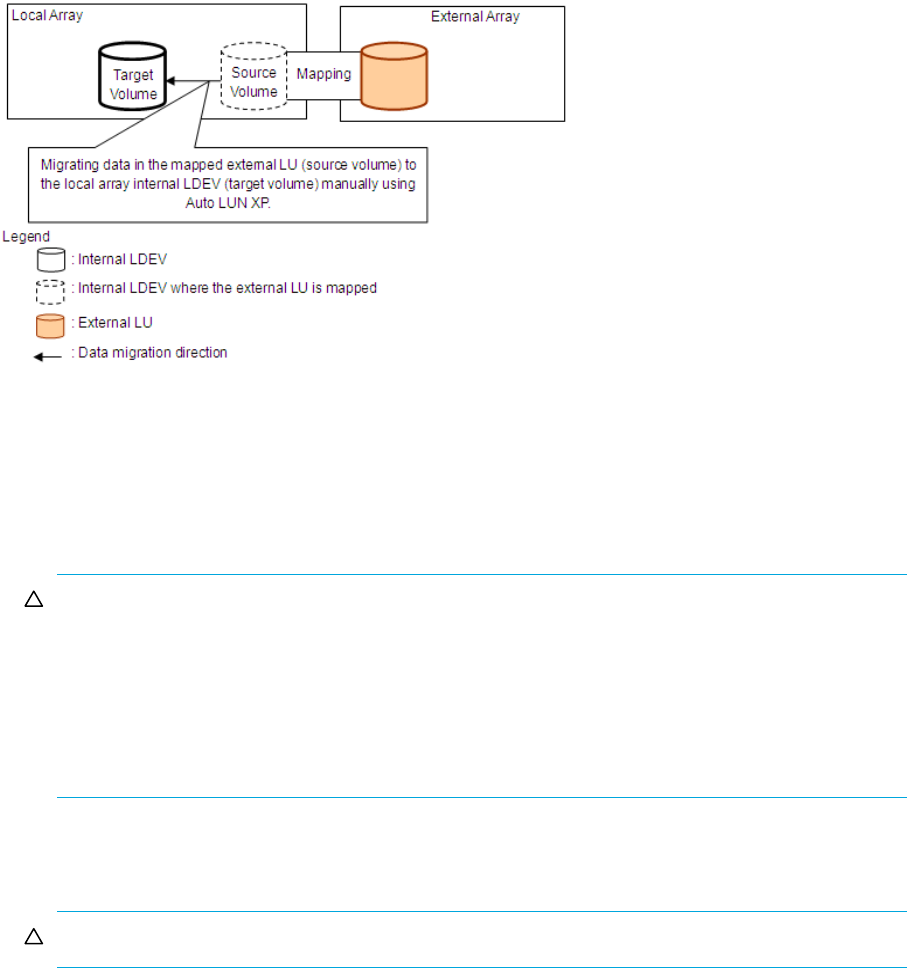 in the external LU is (in effect) manually migrated to the internal LDEV on the local array using Auto LUN
