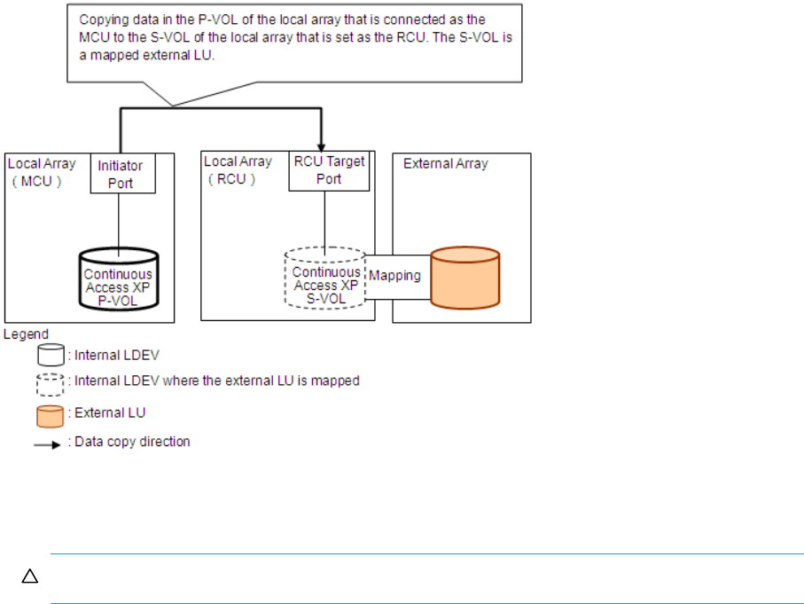 mapped external LU is set as the Continuous Access XP Journal pair’s S-VOL, and the volume in the local