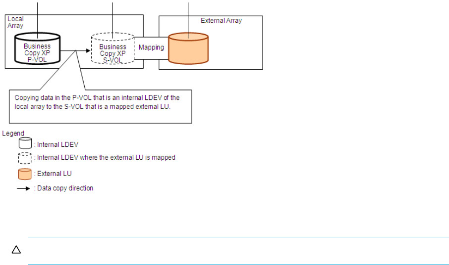 Figure 18 shows an example of using an external LU for Snapshot XP operations. The mapped external LU