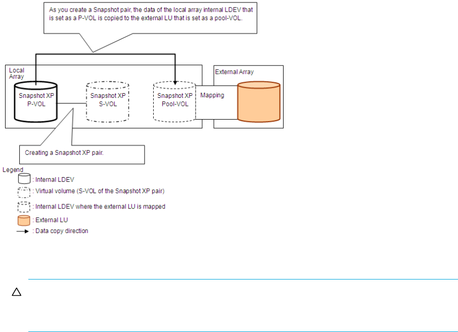 1. Use External Storage XP to map a volume in the external array to an internal LDEV of the local array.
