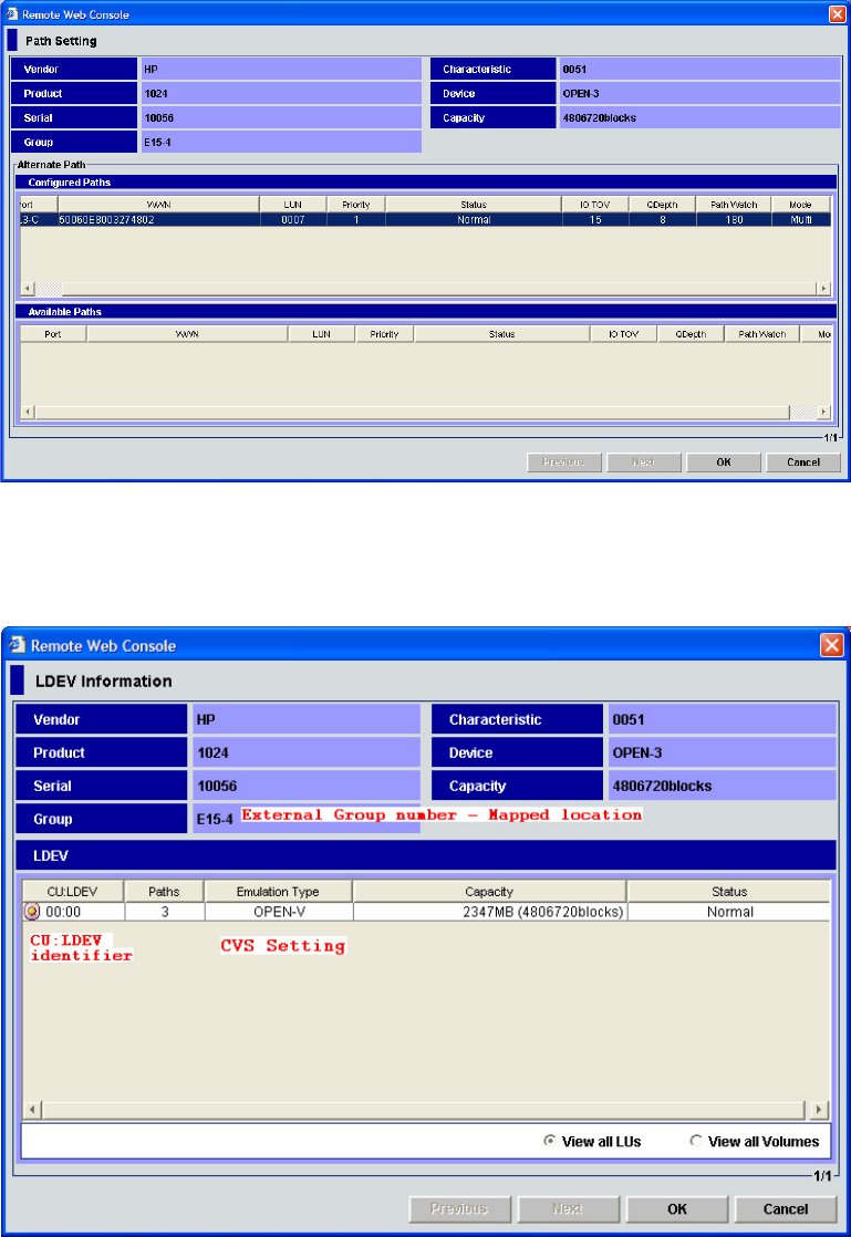 - Checking an external LU’s status (LDEV Information)