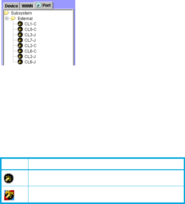 When you select the Port tab, this tree displays information about ports that have the External attribute.
