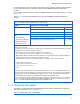 Management server requirements Table 1-5 Usable management server OSs (Windows) OS Edition Service pack HP StorageWorks P9000 Command View Advanced Edition Suite IPv6 DvM TSM RpM HDC SP1 Y -- Y SP2 Y -- Y No SP Y -- Y SP1 Y -- Y No SP Y -- Y SP1 Y -- Y Windows Server Datacenter 32-bit Edition 2008 Datacenter without 1, 2 (x86) Hyper-V 32-bit Edition Enterprise 32-bit Edition Enterprise without Hyper-V 32-bit Edition Standard 32-bit Edition Standard without HyperV 32-bit Editi