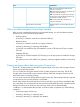 Table 1 Document conventions (continued) Convention Element Monospace text • File and directory names • System output • Code • Commands, their arguments, and argument values Monospace, italic text • Code variables • Command variables Monospace, bold text WARNING! CAUTION: IMPORTANT: NOTE: TIP: 34 Emphasized monospace text Indicates that failure to follow directions could result in bodily harm or death. Indicates that failure to follow directions could result in damage to equipment or data.