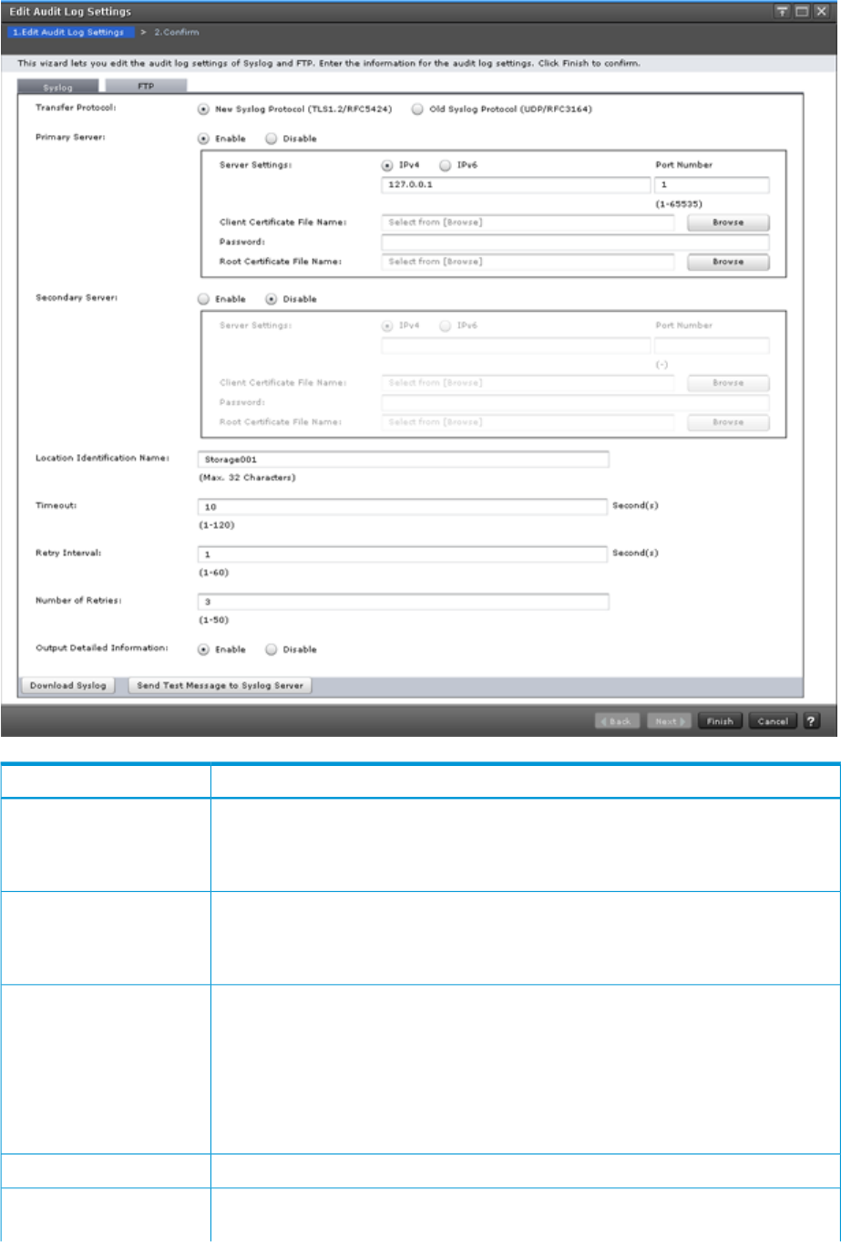 • Enable: Transfers the audit log to the syslog server.