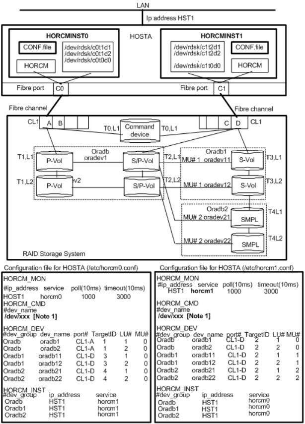 Example of RAID Manager commands with Instance-0 on HOSTA: