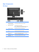 Rear Components Z24i Model Component Function 1 USB 2.0 Downstream Connectors (side panel) Connects optional USB devices to the monitor. 2 Master Power Switch Turns off all power to the monitor. NOTE: Putting the switch in the Off position will yield the lowest power state for the monitor when not in use. 4 3 AC Power Connector Connects the AC power cord to the monitor. 4 DisplayPort Connects the DisplayPort cable to the monitor. 5 DVI-D Connects the DVI-D cable to the monitor.