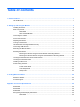 Table of contents 1 Product Features ............................................................................................................................................ 1 HP IPS Monitors ................................................................................................................................... 1 2 Setting Up and Using the Monitor ................................................................................................................. 3 Installing the Stand ..........