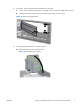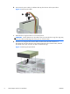 9. Connect the power cable (1) and data cable (2) to the rear of the DX115 case. Figure 13 Connecting the power and data cables 10. Carefully rotate the drive cage back down to its normal position. CAUTION: Check clearances on the cables when you rotate the drive cage. The cage may pinch the cables and damage them if they are not routed correctly. HP Z200, HP Z210 CMT, HP Z400, and HP xw4000 computers 1. Remove the front bezel from the computer to access the optical bays. a. Lift the tab (1). b.