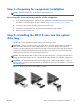 Step 1—Preparing for component installation NOTE: Computer models vary. All illustrations are examples only. Accessing the internal components of the computer 1. If you need help preparing the computer for this installation, consult the removal and replacement procedures in the service guide for your computer at http://www.hp.com/support/manuals. 2. Power down the computer, and then disconnect the power cord. 3. Power down all external devices, and then disconnect them from the computer. 4.