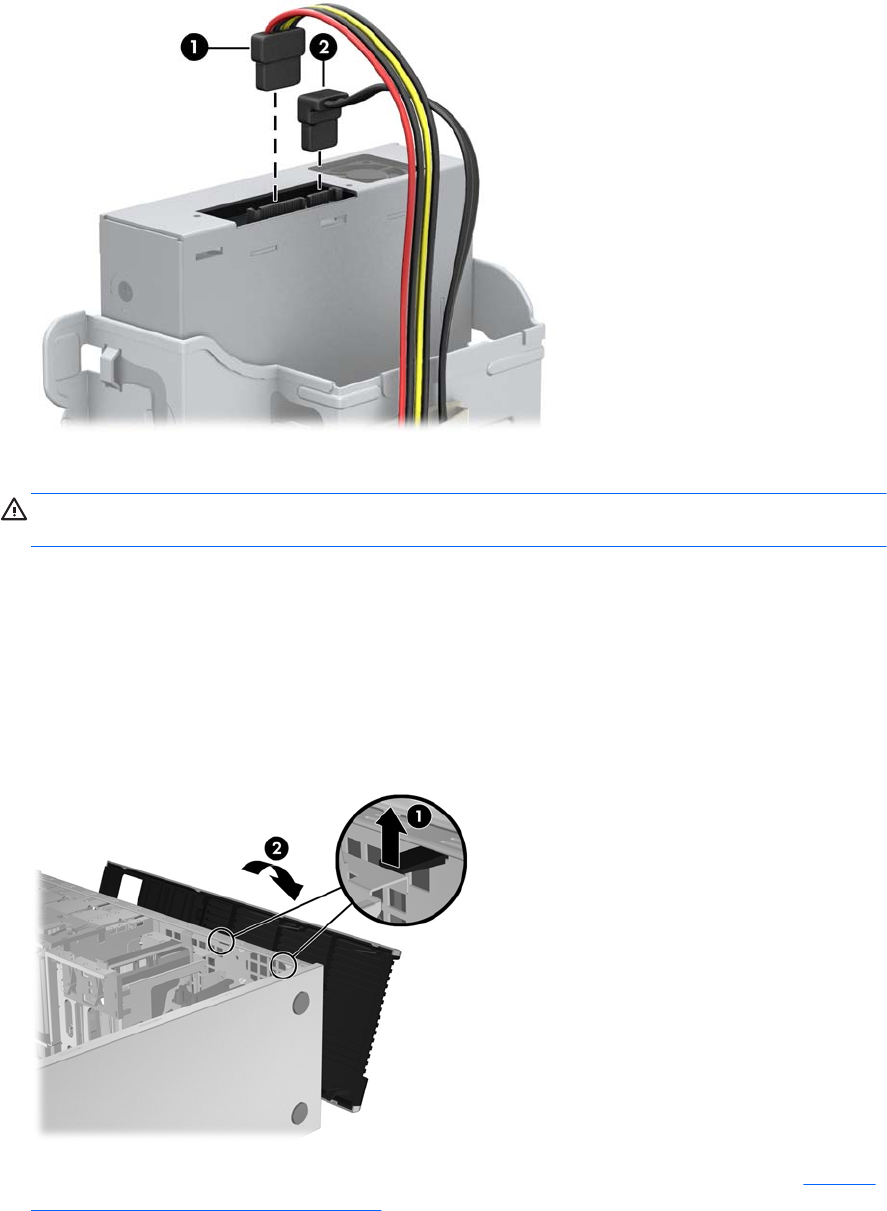CAUTION: Check clearances on the cables when you rotate the drive cage. The cage may