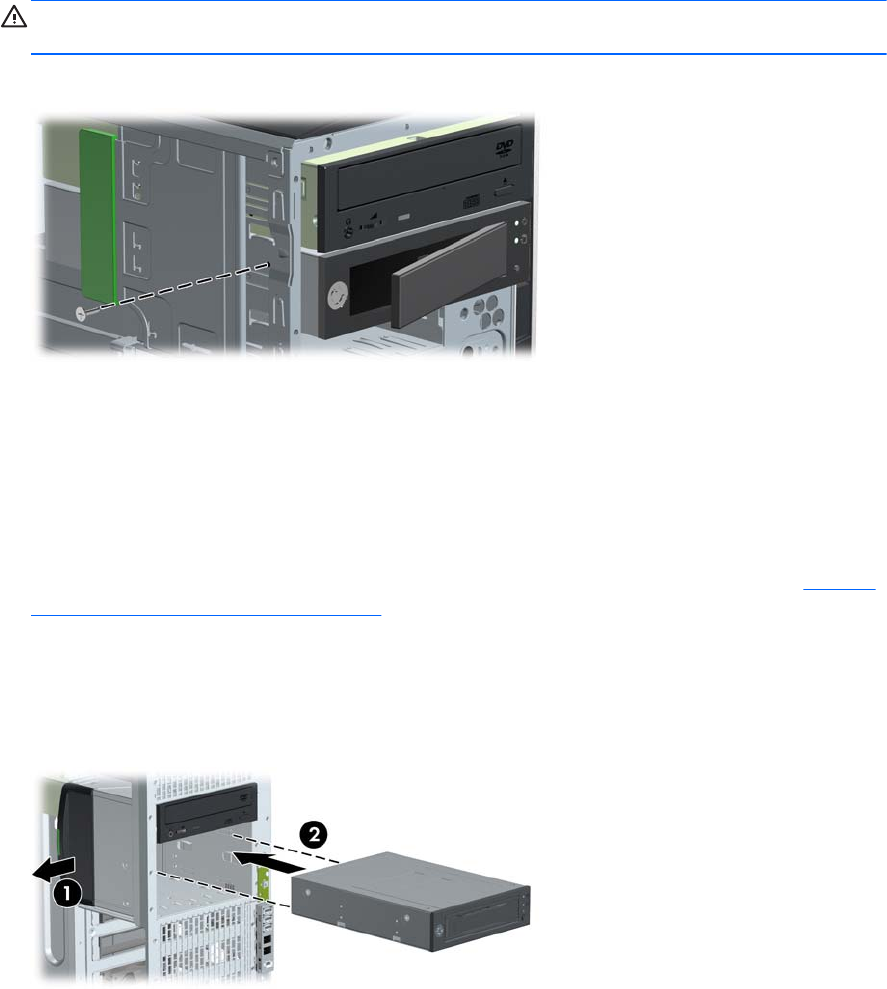 the bay (2). When the front of the drive is near its final position, release the latch, but continue to