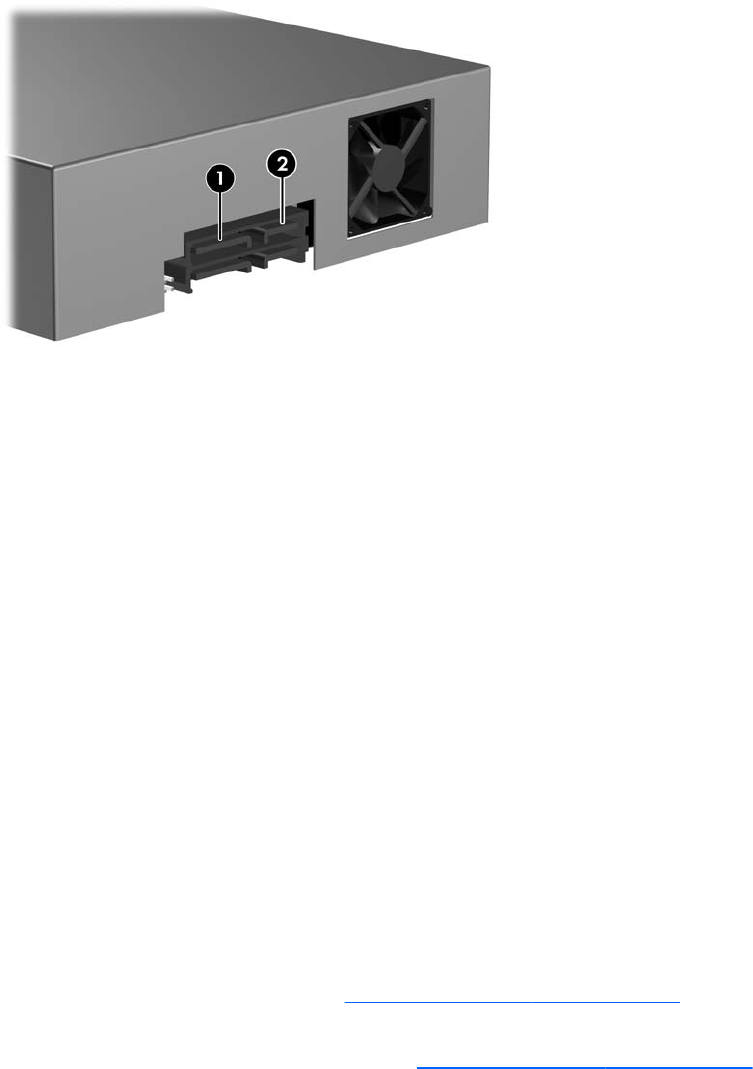 2. Connect the power (1) and data (2) cables to the primary (upper) ports on the unit.