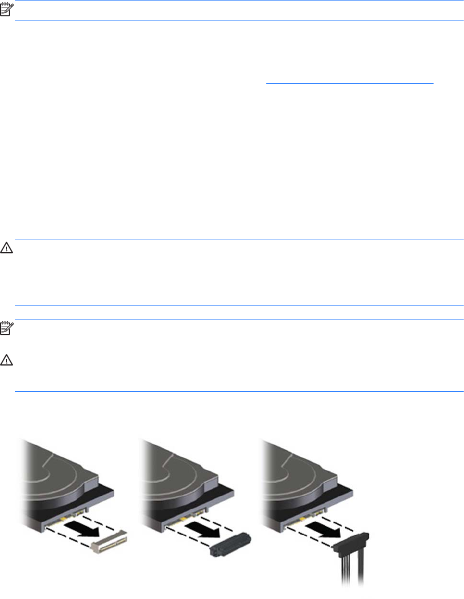 CAUTION: HP computer SAS disk drives are configured with a SAS-to-SATA adapter or cable. To