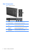 Rear Components Figure 2-2 Rear Components 4 Component Function 1 AC Power Connector Connects the AC power cord to the monitor. 2 DisplayPort Connects the DisplayPort cable to the monitor. 3 DVI-D Connects the DVI-D cable to the monitor. 4 VGA Connects the VGA cable to the monitor. 5 USB Upstream Connector Connects the USB hub cable to the monitor's USB hub connector and to a host USB port/hub. 6 USB Downstream Connectors (2) Connects optional USB devices to the monitor.