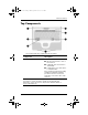 348383-001.book Page 1 Friday, September 12, 2003 10:50 AM 1 Notebook Features TouchPad Components Your model might vary slightly from this illustration. Component Description 1 TouchPad Moves the pointer and selects or activates items on the screen. Can be set to perform other mouse functions, such as scrolling and double-clicking. 2 Left and right TouchPad buttons Function like the left and right buttons on an external mouse.