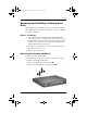 345582-001.book Page 6 Friday, September 12, 2003 2:40 PM Communication Devices To connect the network cable: 1. Check that the existing LAN supports Ethernet 10BASE-T/100BASE-TX connections. 2. Plug the network cable 1 into the RJ-45 network jack on the notebook. 3. Plug the other end of the cable 2 into a network jack. 4. Start or restart the notebook. Windows Help for information about setting up and using ✎ See LAN connections. Select Start > Help and Support.