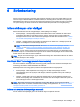 Datorn kan drivas antingen med batteri eller nätström. När datorn drivs med enbart batteri och det