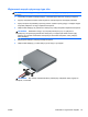 7. Zwolnij dysk, odciągając wypustkę zwalniającą od dysku (1) i wysuwając dysk z wnęki (2).