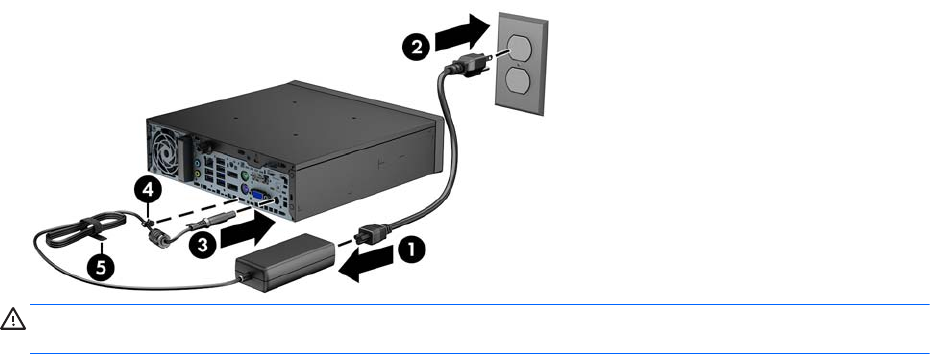 1. 전원 공급 장치 단자에 전원 코드의 암 끝을 연결합니다(1).