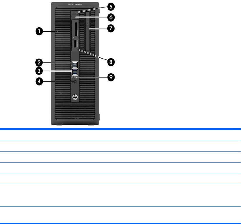 3 USB 3.0 포트(파랑) 8 8.89cm 미디어 카드 리더(선택 사양)