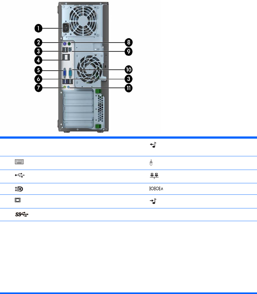 참고: 선택 사양인 보조 직렬 포트 및 선택 사양인 병렬 포트는 HP 에서 구입할 수 있습니다.