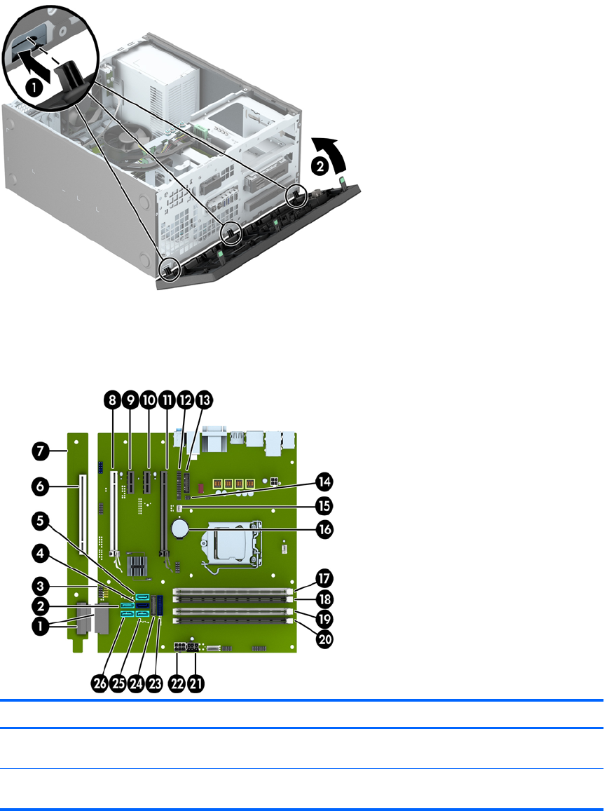 다음 그림과 표를 참조하여 시스템 보드 연결단자를 확인합니다.