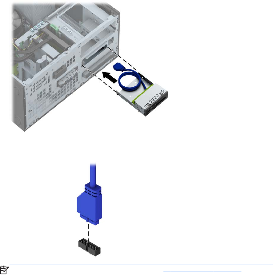9. USB 3.0 미디어 카드 리더를 설치하는 경우 미디어 카드 리더의 USB 케이블을 시스템 보드에서