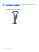 C Montage du client léger Ce modèle de client léger inclut quatre points de montage à l'arrière de l'ordinateur. Ces points de montage sont conformes à la norme VESA (Video Electronics Standards Association) qui propose des interfaces de montage standard pour des écrans plats tels que des moniteurs à panneau plat, des écrans plats et des téléviseurs plats. Le socle doit être retiré pour préparer l'ordinateur pour le montage. 8 1.