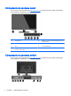 Composants du panneau avant Pour en savoir plus, consultez le site http://www.hp.com et recherchez votre modèle de client léger pour accéder aux QuickSpecs correspondant au modèle. (1) Haut-parleurs (5) Réduction du volume, lorsque l'affichage de l'écran n'est pas visible (2) Auto/Exit (6) Alimentation (3) Menu (7) Voyant d'alimentation (4) Augmentation du volume, lorsque l'affichage de l'écran n'est pas visible Composants du panneau arrière Pour en savoir plus, consultez le site http://www.